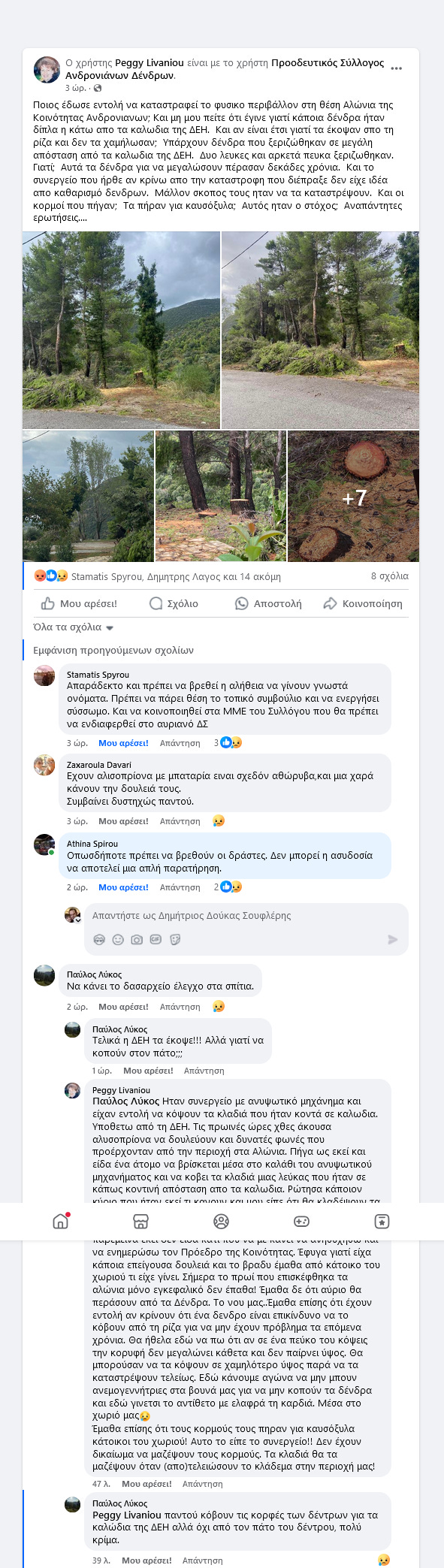 Κλασσική παράβαση της ΔΕΔΔΗΕ (;) στην δήθεν κλάδευση των δέντρων. Στα Αλώνια Ανδρονιάνων