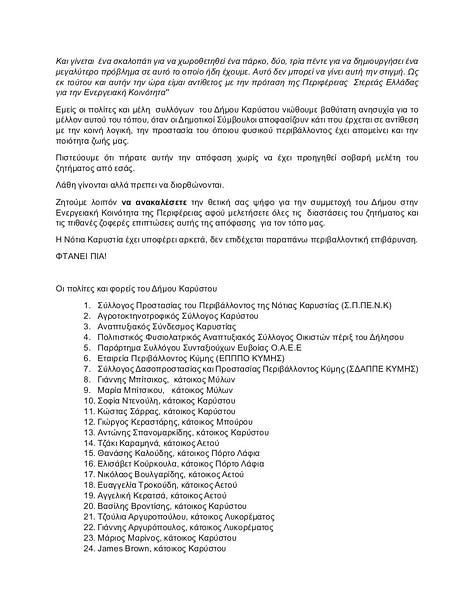 ΑΝΟΙΚΤΉ ΕΠΙΣΤΟΛΗ ΠΡΟΣ ΤΟΥΣ ΔΗΜΟΤΙΚΟΥΣ ΣΥΜΒΟΥΛΟΥΣ ΤΗΣ ΣΥΜΠΟΛΙΤΕΥΣΗΣ ΔΗΜΟΥ ΚΑΡΥΣΤΟΥ
